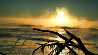 途中の街路樹が 樹氷に覆われ